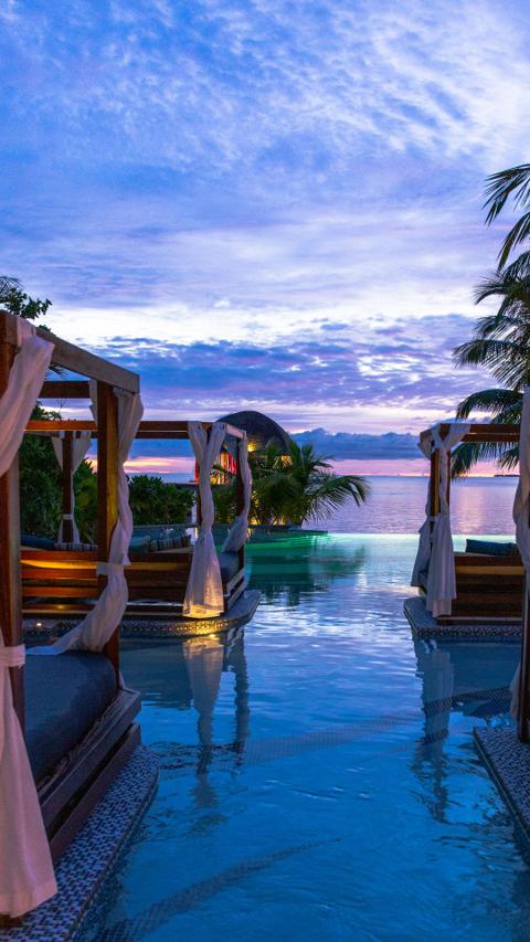 The hotel features serene garden lounges that create a peaceful atmosphere. With private balconies, each room offers a tranquil escape.